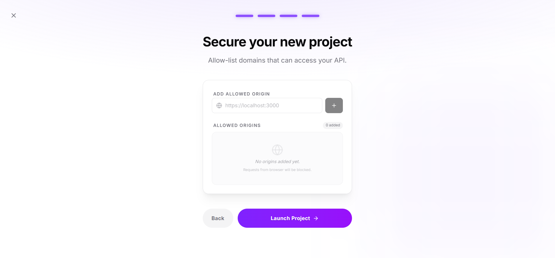 Give your project a unique, identifiable name. This will be used in your dashboard and usage reports.